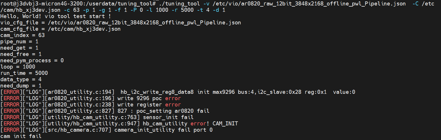 tuning_tool -v /etc/vio_tool/ar0820_rhode_raw_12bit_3840x2160_offline_pwl_Pipeline.json -C /etc/cam/hb_xj3dev.json -c 63 -p 1 -g 1 -f 1 -P 0 -l 1000 -r 5000 -t 4 -d 1