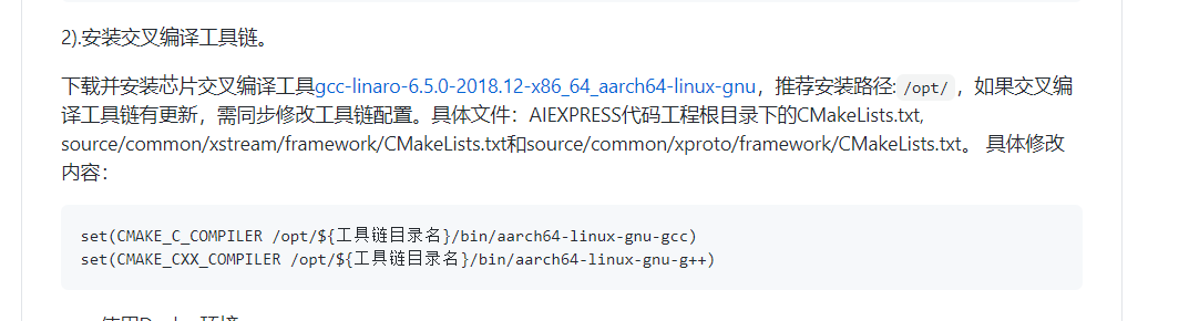 set(CMAKE_C_COMPILER /opt/${工具链目录名}/bin/aarch64-linux-gnu-gcc)。