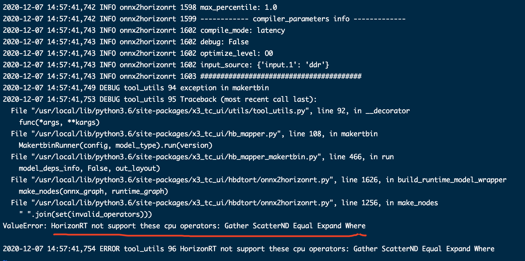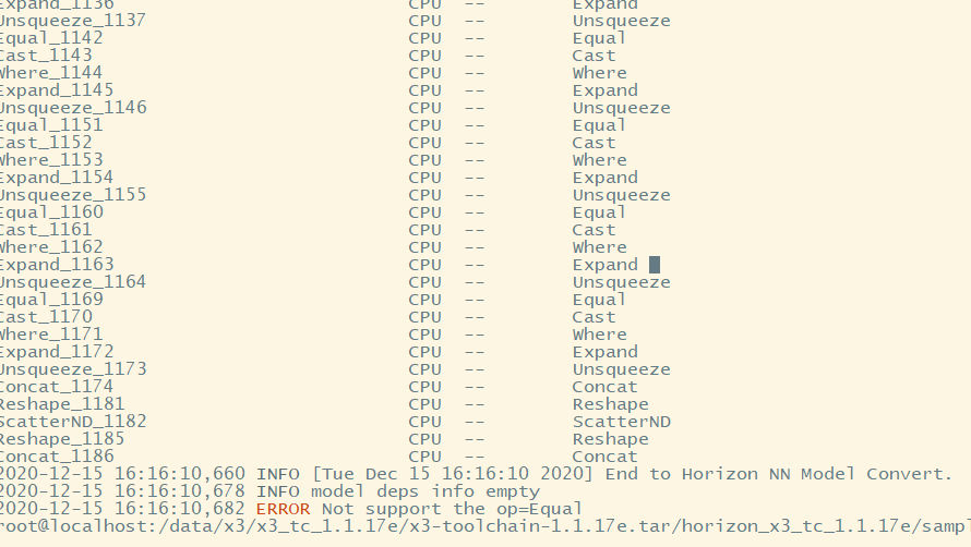 2020-12-07 10:17:01,645 INFO build 34 [Mon Dec 7 10:17:01 2020] End to Horizon NN Model Convert.