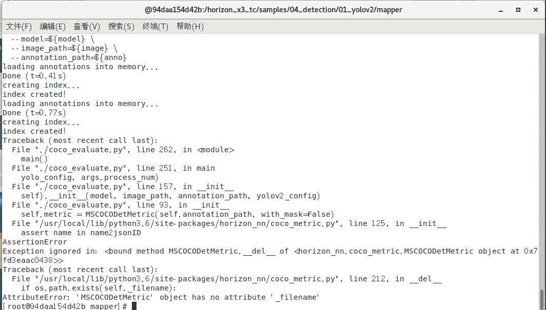 File "/usr/local/lib/python3.6/site-packages/horizon_nn/coco_metric.py", line 212, in __del__