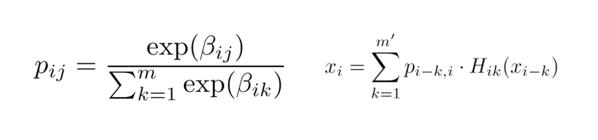 对于 block 层次,每个 block 的数据会输出到其后继的几个 block,每条输出的路径同样会被赋予一个结构参数,并通过softmax 归一化为输出概率。每个 block 会接受前继几个 block 的输出数据,在 head layers 部分,会对来自不同 block 的数据利用路径的概率值进行加权求和: