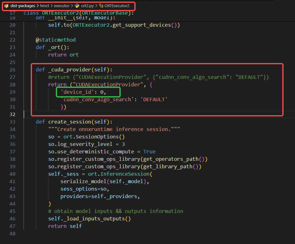 2. 如果1确实尝试过了不行,那你可以通过修改一下工具链的脚本文件(/usr/local/lib/python3.10/dist-packages/hmct/executor/ort2.py)进行设置和测试,修改的文件和方式如下: