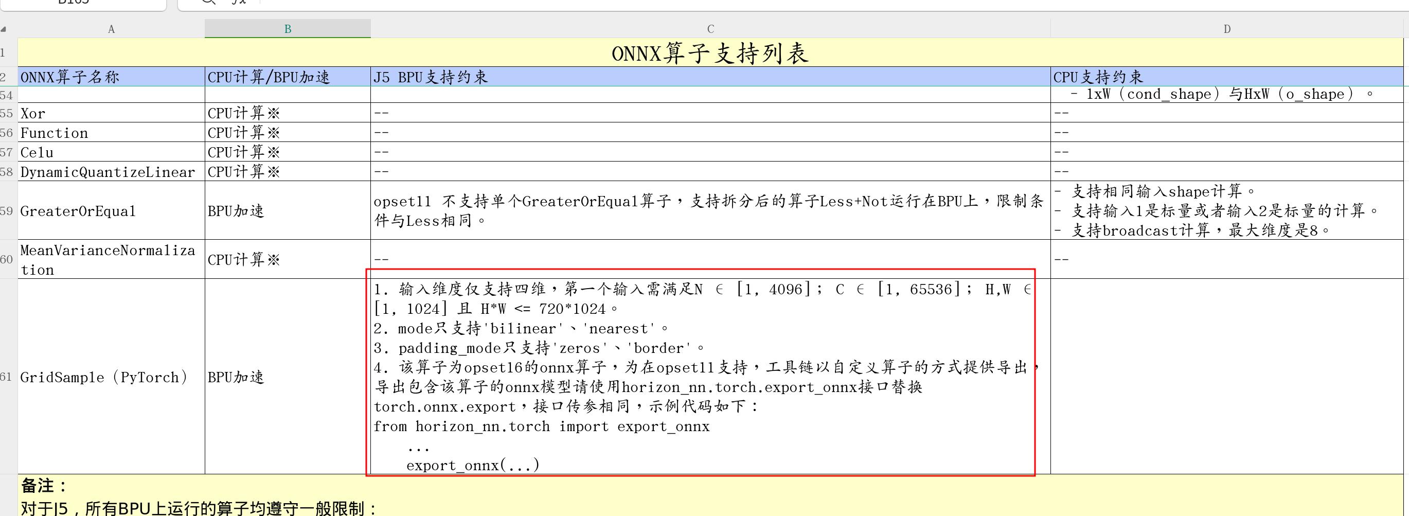 import torchimport torch.nn as nnimport torch.nn.functional as Ffrom horizon_nn.torch import export_onnxclass GridSampleModel(nn.Module):def __init__(self):super(GridSampleModel, self).__init__()def forward(self, x, grid):return F.grid_sample(x, grid, mode='bilinear', padding_mode='zeros', align_corners=True)# 创建模型model = GridSampleModel()# 输入张量 (batch_size=1, channels=3, height=4, width=4)x = torch.randn(1, 3, 16, 16)# 创建一个仿射网格theta = torch.tensor([[[1.0, 0.0, 0.0], [0.0, 1.0, 0.0]]], dtype=torch.float) # 恒等变换grid = F.affine_grid(theta, x.size(), align_corners=True)# 进行前向计算output = model(x, grid)print("Output Shape:", output.shape)# 导出 ONNXtorch.onnx.export(model, (x, grid), "grid_sample.onnx",input_names=['input', 'grid'],output_names=['output'],opset_version=11)print("ONNX 模型已导出:grid_sample.onnx")你看下这个吧用chagpt或着ds帮你整理下格式这个可以在1.1.74里面用opest为11