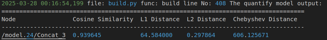在量化过程中有warning:WARNING find illegal threshold in /model.24/Mul_2/model.24/Constant_4_output_0_expand_dims_HzCalibration, it will be set default.h和Node /model.24/Pow_2_output_0_calibrated_HzDequantize is not adjacent to input or output. It can not be removed! Skipped!