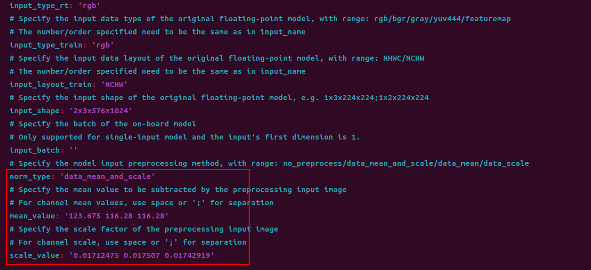 麻烦大佬帮忙看一下:ptq 时对于校准yaml文件的准备,将 input_type_rt 和 input_type_train 都设置为了 rgb 进行校准量化,首先将norm_type 设置为 no_preprocess,这样处理是因为我使用的校准数据集已经归一化过了,结果这样量化后得到的一致性很差。然后我就在校准文件中加上了归一化的设置,如下图所示,量化后的模型一致性就正常了。但是我输入的校准数据是已经经过归一化处理的了,然后yaml中又设置了一次,相当于进行了两次预处理操作?校准数据集和yaml文件都需要进行预处理操作吗?