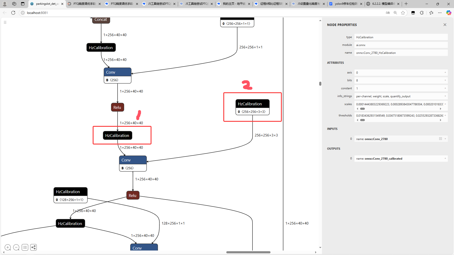 现尝试对激活现在准备对激活校准节点后的卷积节点进行int16输入输出量化: