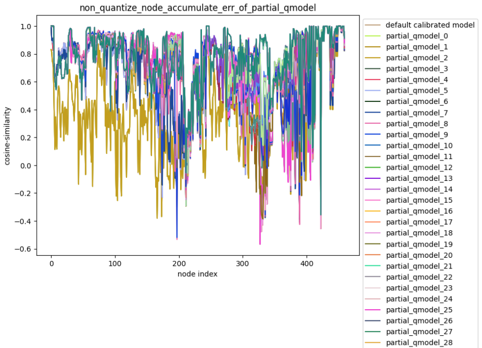 并且已按敏感度排序激活校准节点,并且对余弦相似度较低的激活激活节点尝试解除量化后发现模型误差有明显好转: