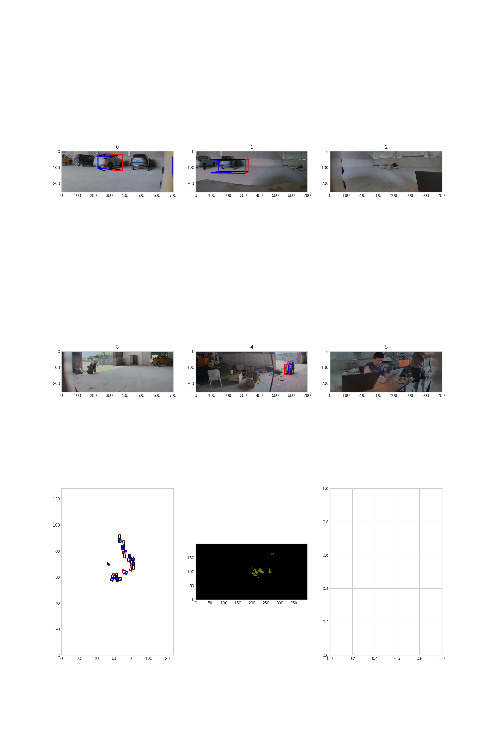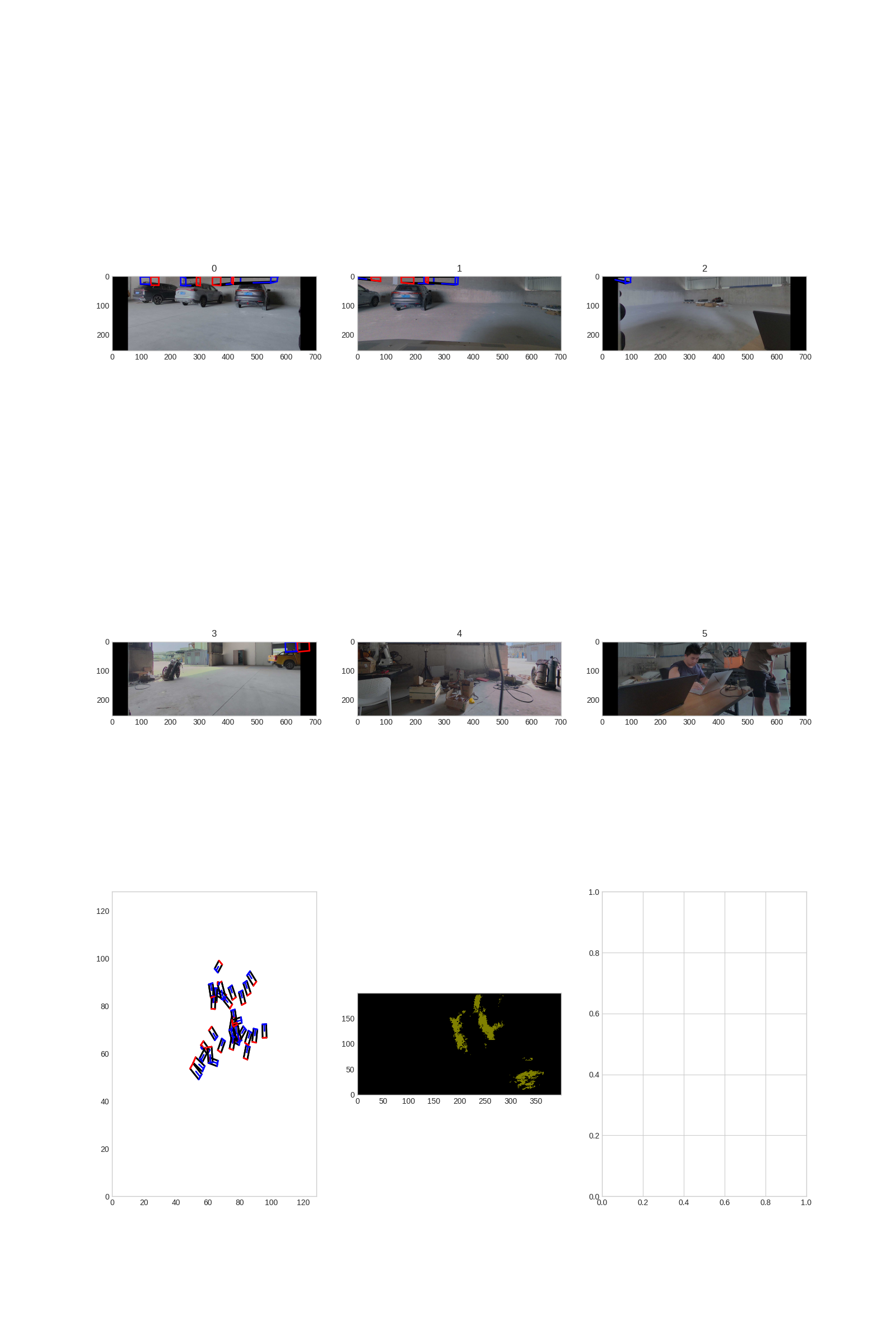 3.操作描述:将一组数据(6 张图片和相机内参)预处理成1600*900,使用 bev_mt_lss 模型推理得到可视化结果