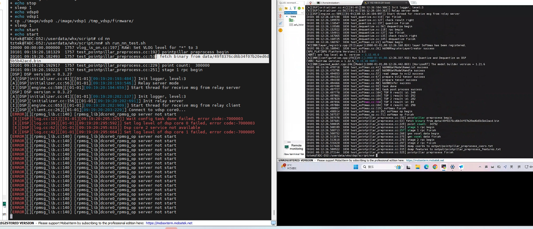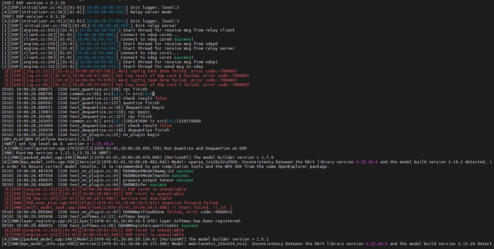 按照文档10.4 dsp示例包在j5测试时, 无法启动dsp