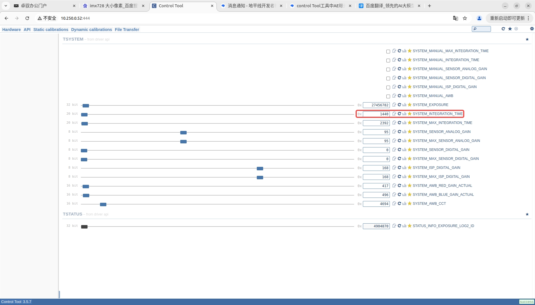 数值那么小吗,我给line的值最大设置20,结果SYSTEM_INTEGRATION_TIME读出来是 1440 line(1440 line换算为20000μs)。CMOS_EXP_PARTITION中分配的line值和SYSTEM_INTEGRATION_TIME 有换算关系吗?