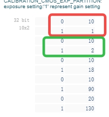曝光表分别为line[0],gain[0],line[1],gain[1],line[2],gain[2]……,其中line[0],gain[0]表示第一阶段的line/gain的max值。 转换为exp_lut[0],exp_lut[1],exp_lut[2],exp_lut[3]……,其中exp_lut[0]表示第一阶段可分配的最大line,exp_lut[1]表示第一阶段可分配的最大gain。