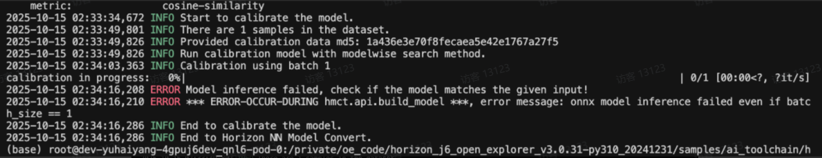 2025-10-1502:34:16,210 ERROR *** ERROR-OCCUR-DURING hmct.api.build_model***,error message: onnx model inferencefailed even if batch_size==1