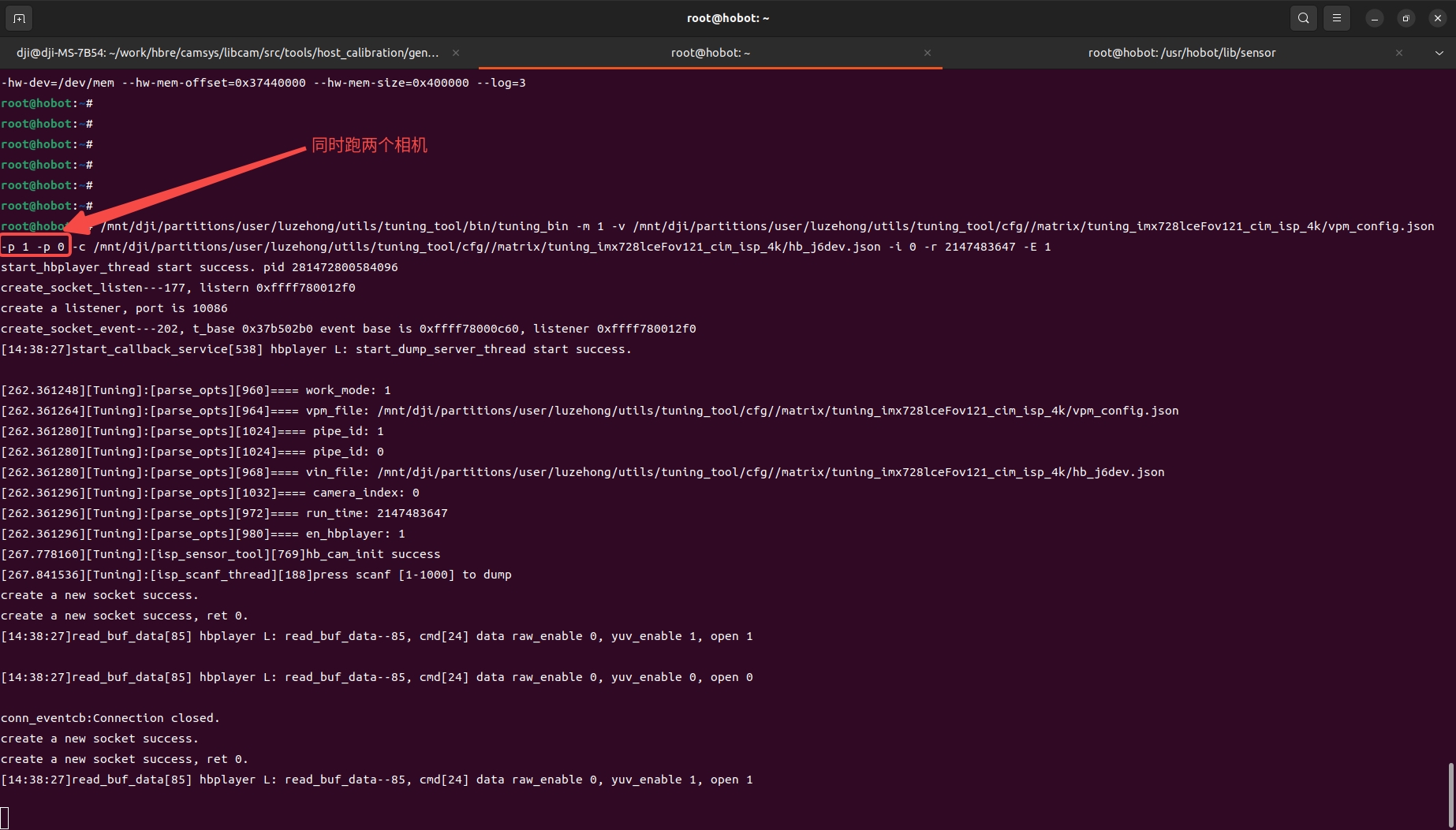 我跑tuning_bin指定同时跑2个相机,也没有跑错,如下: