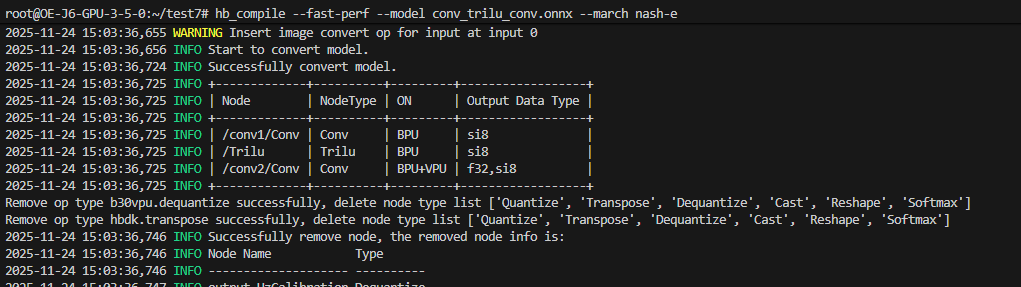 你好,对齐一下:1. 地平线系列芯片是没有NPU的,你指的是BPU。2. 帖子中没看到你用的芯片型号,请问一下型号呢。3. 从算子支持列表( J6E/M ONNX 算子支持列表 - Horizon OpenExplorer )看, Trilu 是支持BPU加速的,你说在 cpu上运行 ,你是如何看的呢?