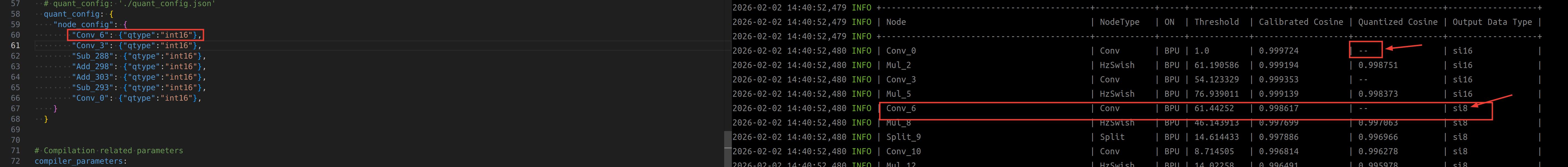 这里配置的qtype是指的 conv_6 的输入为int16,你显示的int8是该节点的输出类型。你可以配置 conv_6 的下一个节点的qtype为int16,conv_6的output就会显示int16了