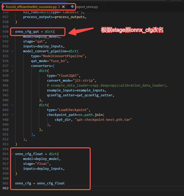 上面是导出qat模型的配置,导出浮点模型,如何修改?
